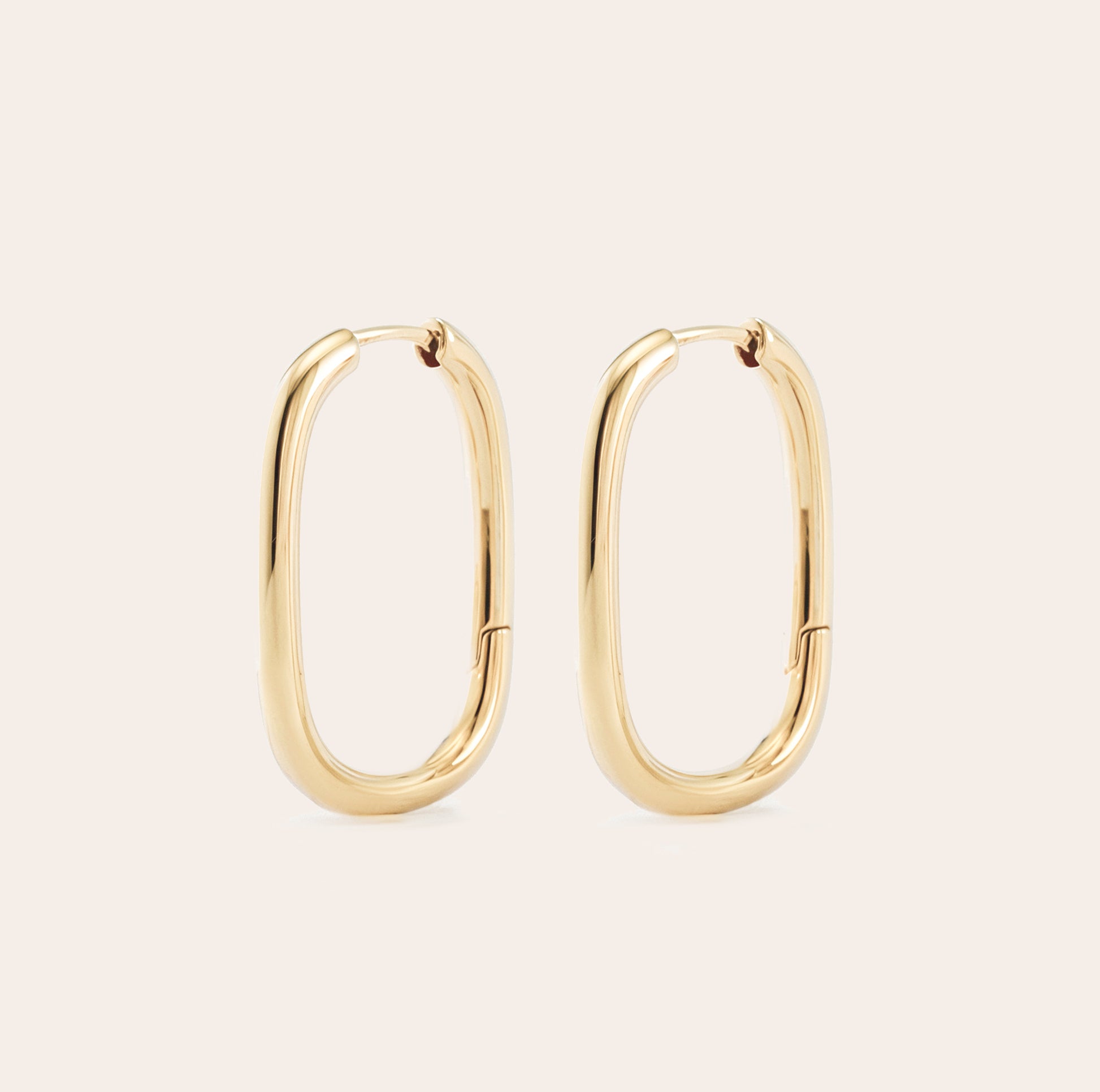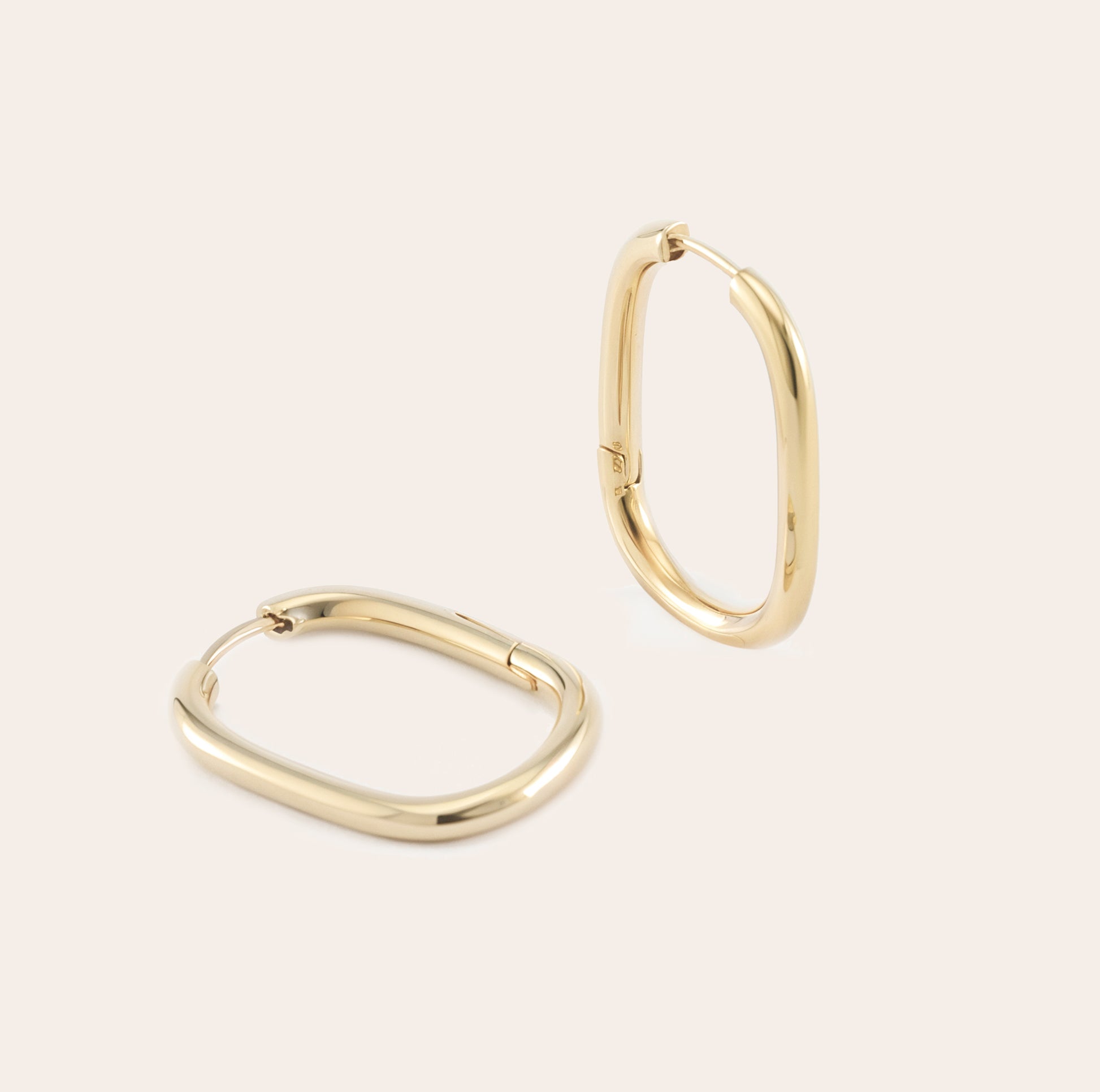The Athena hoops in gold vermeil feature a sleek oval shape crafted from sterling silver and coated in rich 14K gold. They’re hypoallergenic, lightweight, waterproof, and sweatproof—bringing everyday elegance to your athleisure wardrobe.