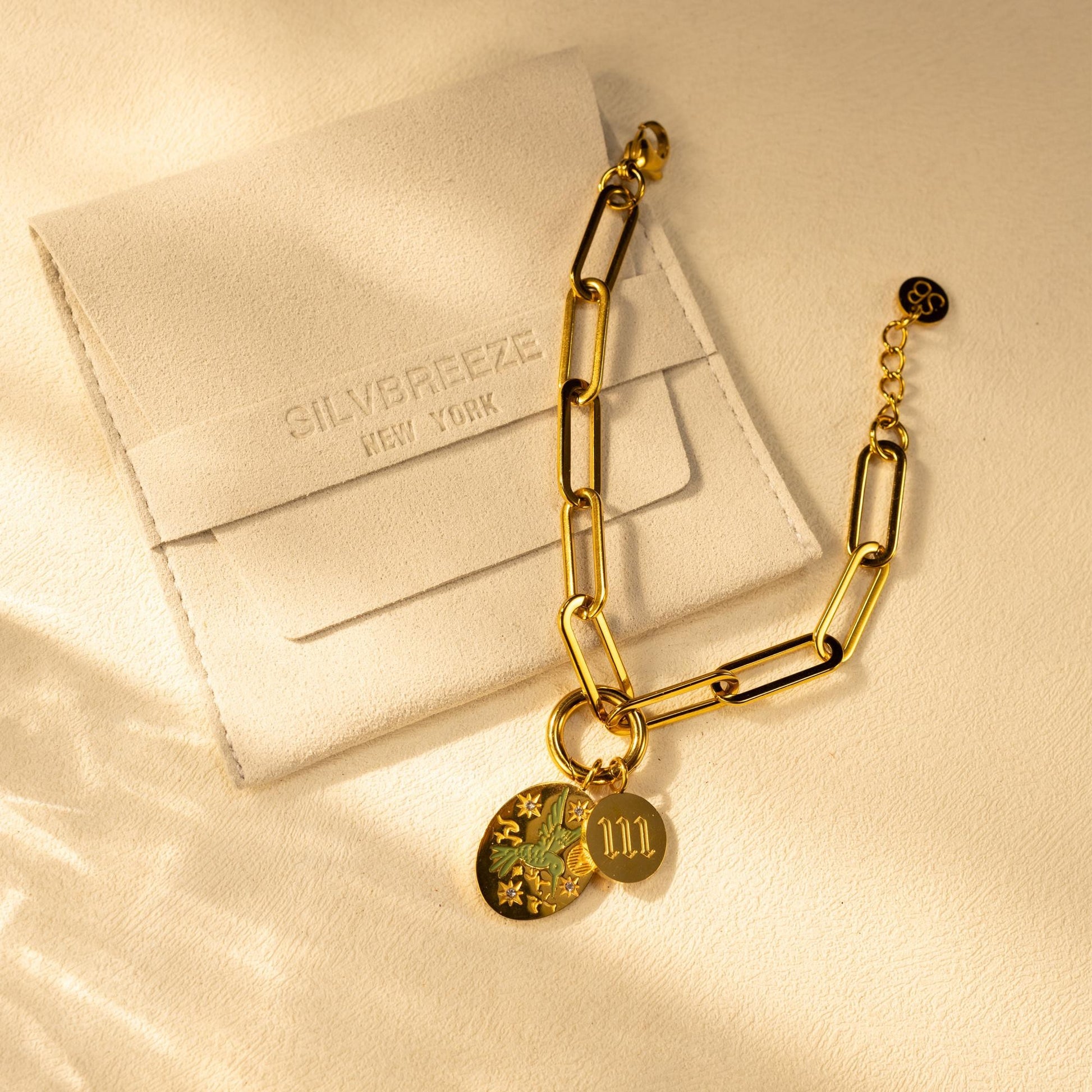 A symbol of destiny and freedom, the Silvbreeze Zephyra bracelet showcases a hand-painted greenbird in flight across a starry night — paired with your chosen angel number (1–9) for a touch of personal meaning.